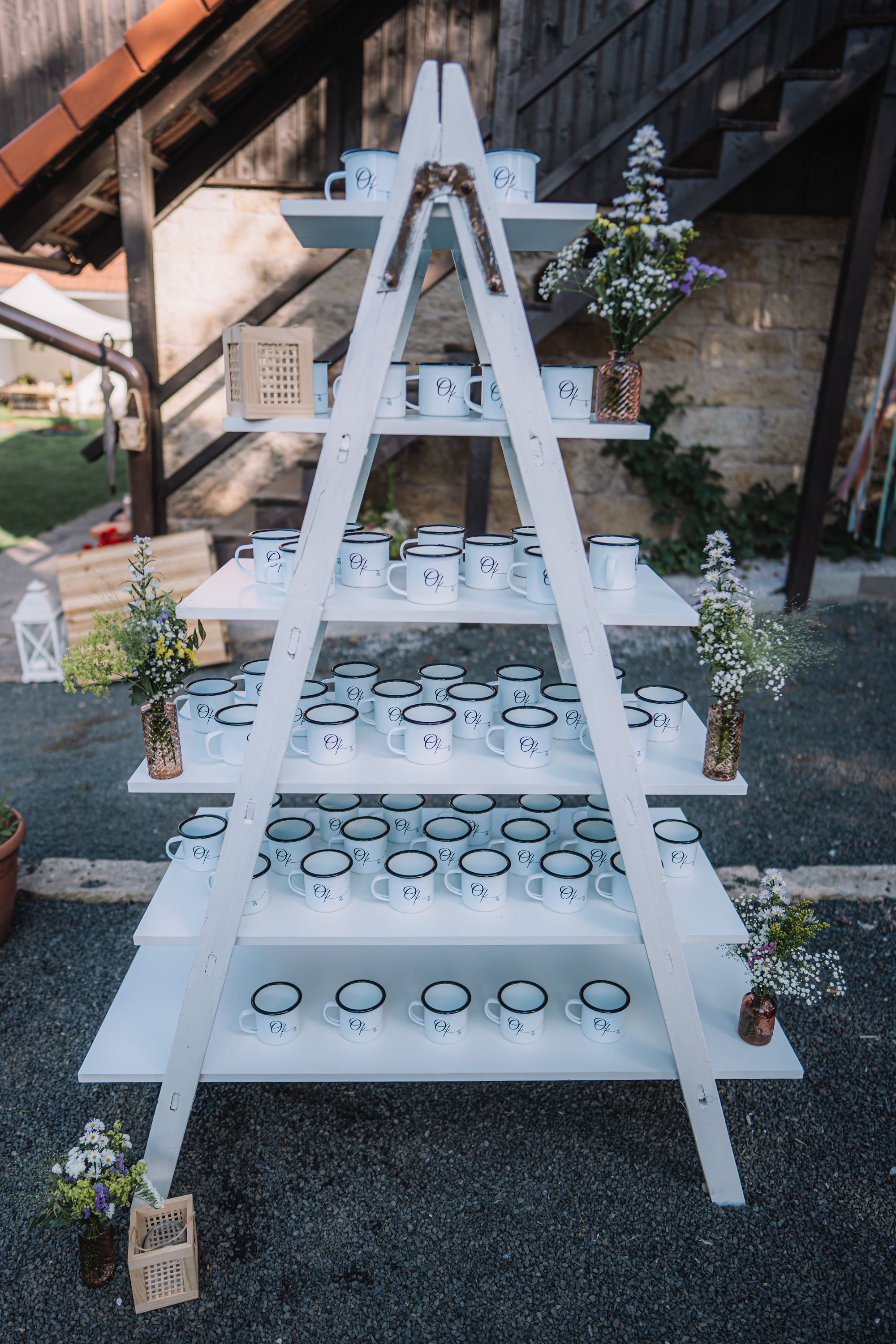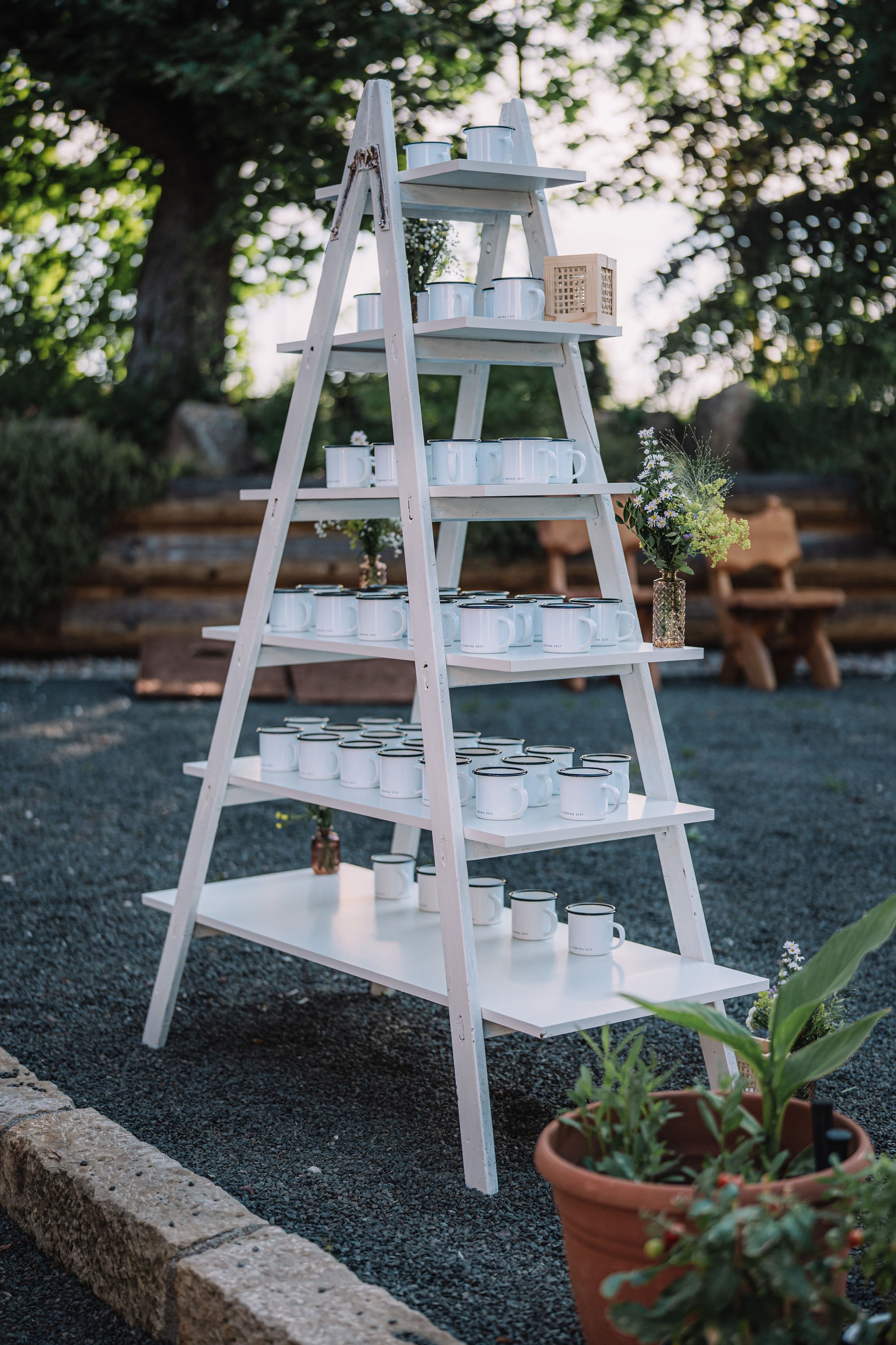 Bílé štafle etažér