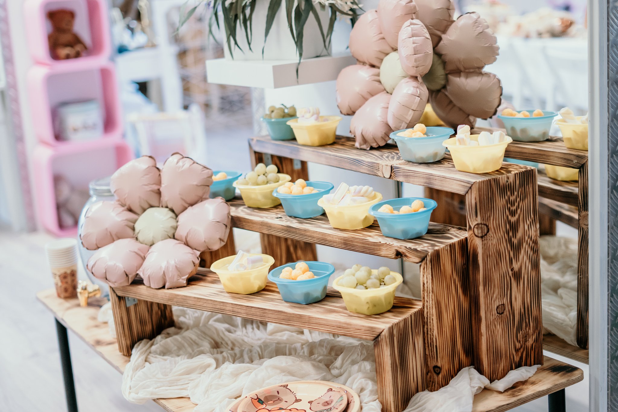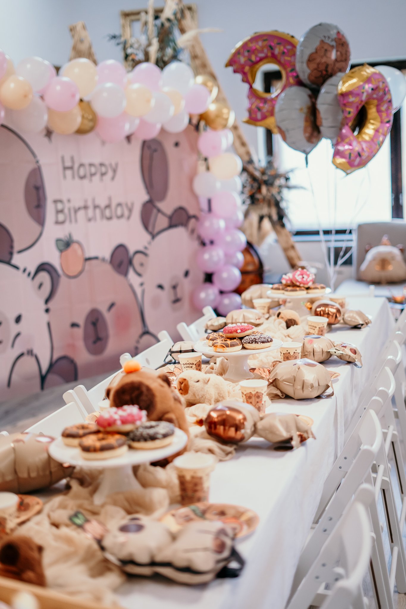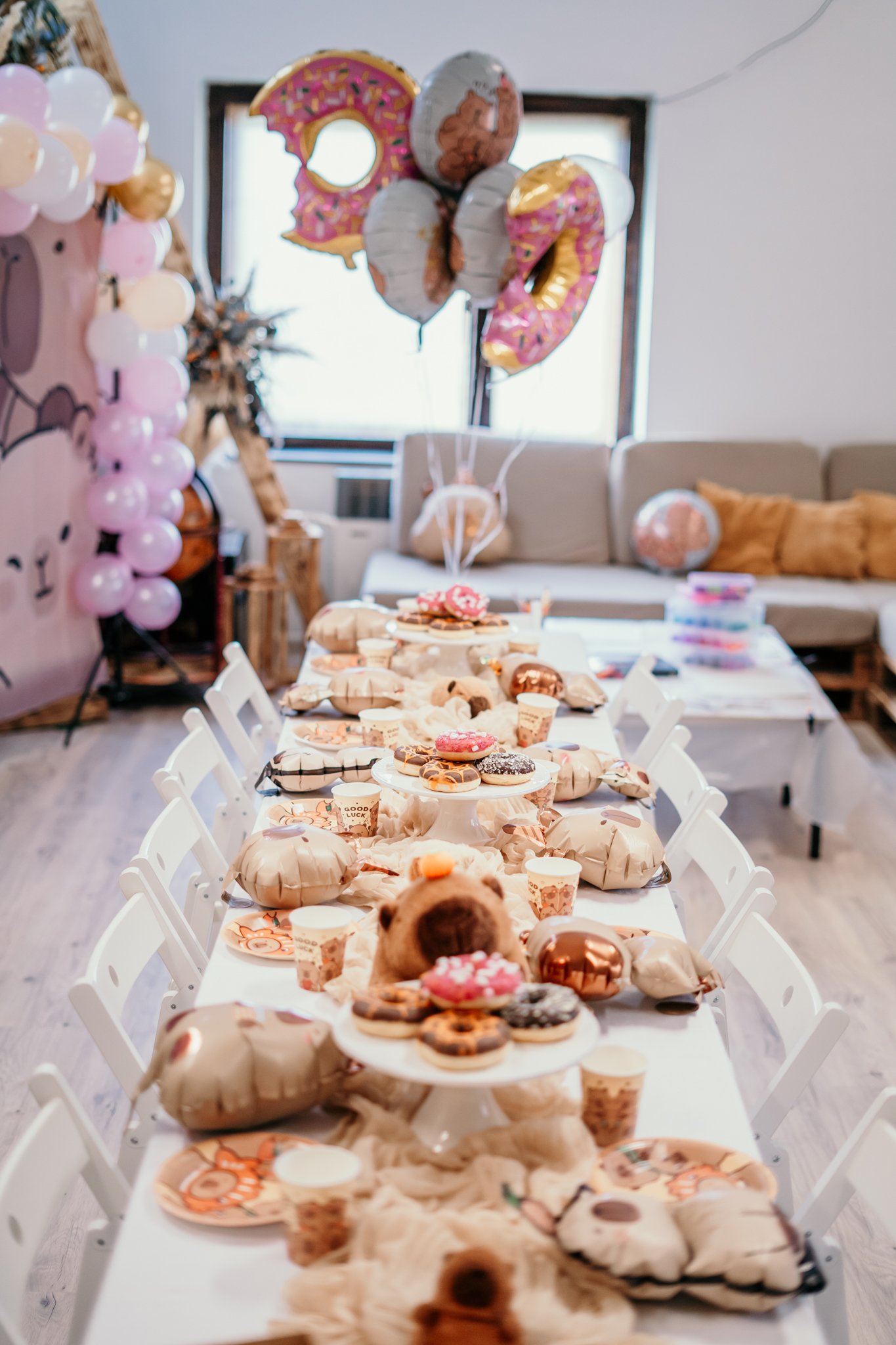 Prostor je vybaven gaučem s konferenčním stolkem, dětským koutkem, třemi nízkými stolky a stoličkami k sezení. Výzdobu pro vás připravíme dle zvoleného tématu nebo barevného ladění.