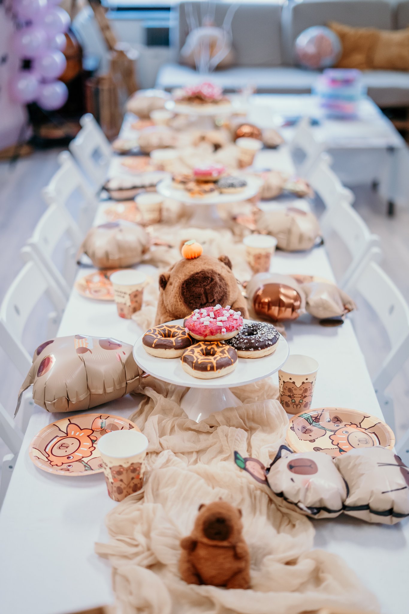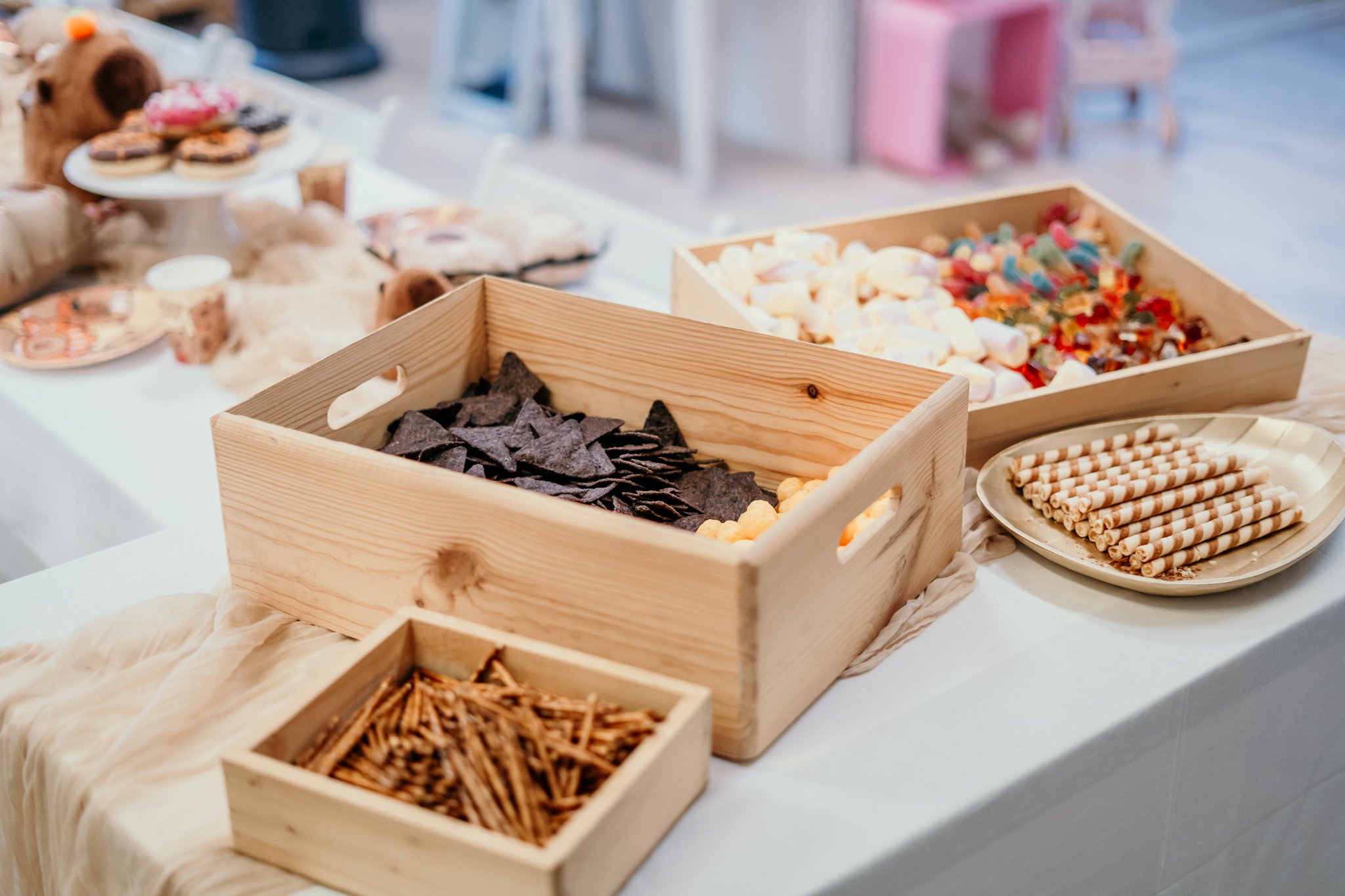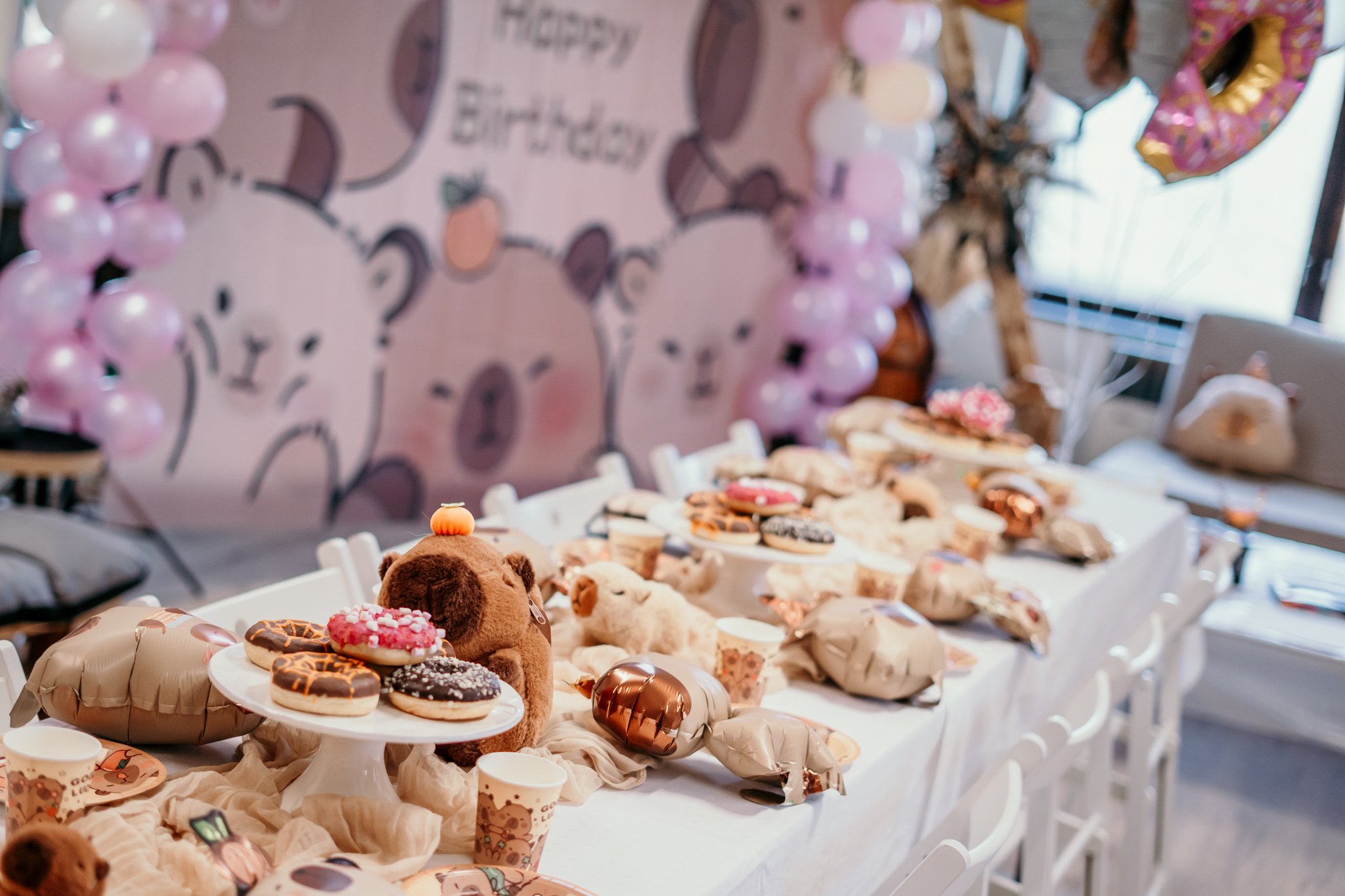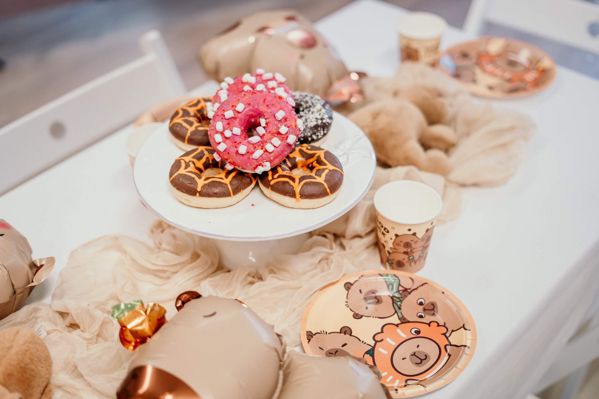 Prostor je vybaven gaučem s konferenčním stolkem, dětským koutkem, třemi nízkými stolky a stoličkami k sezení. Výzdobu pro vás připravíme dle zvoleného tématu nebo barevného ladění.