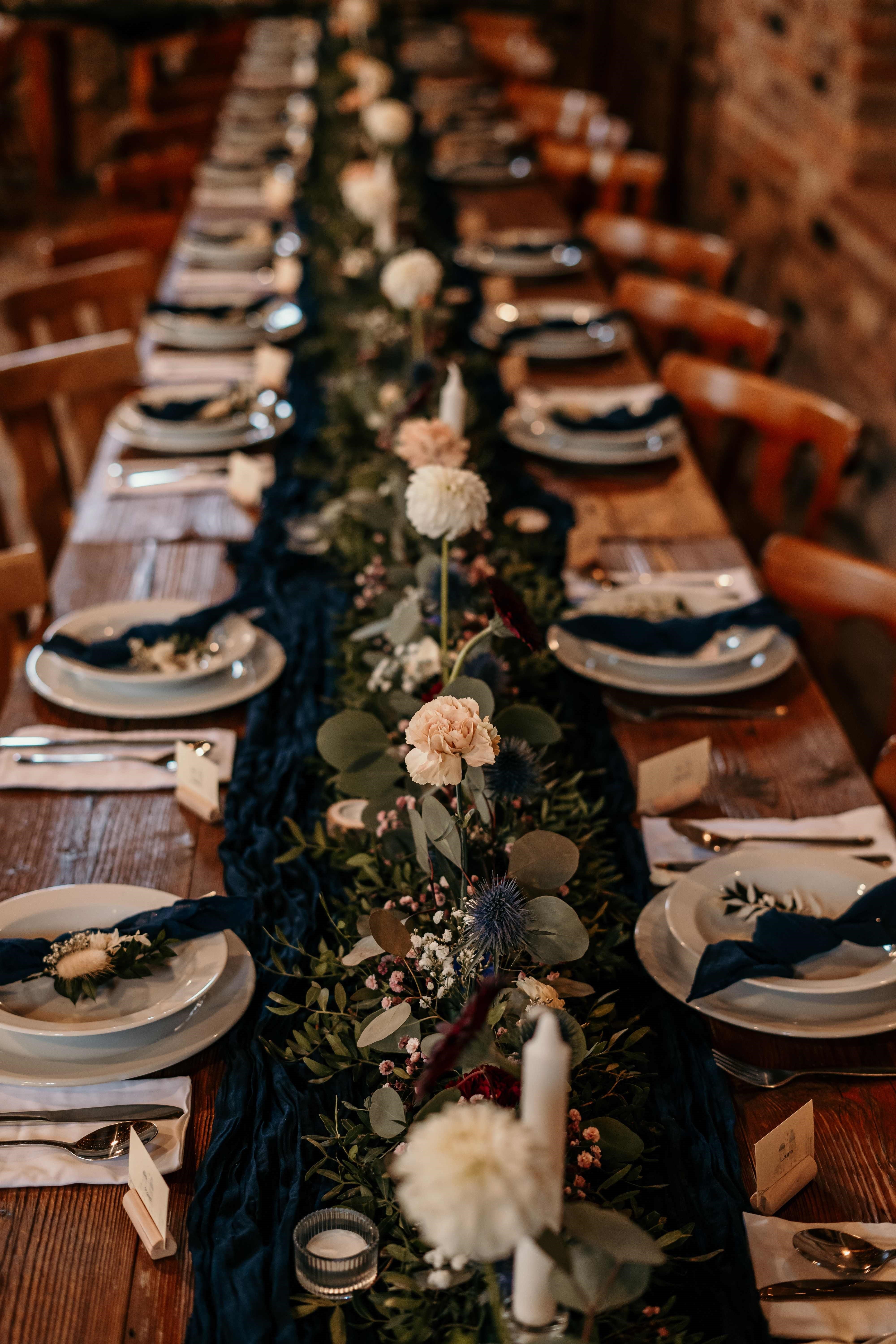 Tmavě modrý mušelín běhoun 3m